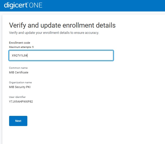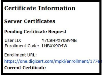 The system will display the certificate information necessary to retreive the new certificate. If you already have one or more certificates, they will be displayed as valid.